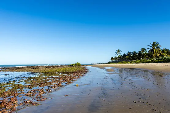 Pouco badalada, a Praia de Cacimbinhas fica no município de Tibau do Sul, no litoral sul do Rio Grande do Norte, a aproximadamente 80 km de Natal. A areia é fina e branca e o mar varia entre tons de azul-turquesa e verde- esmeralda. Sua pequena extensão – tem cerca de 600 metros de comprimento – contribui para seu charme aconchegante. O cartão-postal, no entanto, são as falésias. Com cores que variam do vermelho ao amarelo, elas criam um contraste único com o azul do mar. Na maré baixa, formam-se piscinas naturais, ideais para um banho tranquilo.