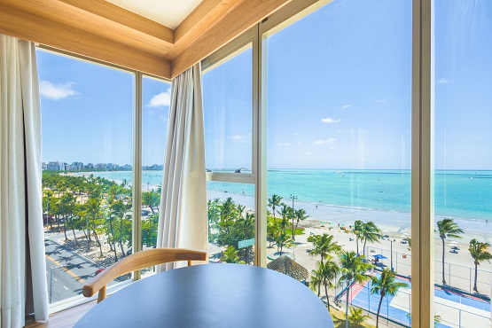 5. Sais Beach Living Hotel: O novo empreendimento upscale tem três piscinas. Uma delas é semi-olímpica. A que está localizada no piso Bem-Estar é ideal para quem busca tranquilidade. Já a do rooftop tem música ao vivo e drinks exclusivos. Todas têm espreguiçadeiras, ombrelones e mesas de excelente qualidade, garantindo conforto em todas as ocasiões. Outro ponto alto é a gastronomia, que chega com o propósito de oferecer uma verdadeira experiência cultural pelas mãos do premiado chef Wanderson Medeiros, o Picuí. O restaurante principal apresenta uma curadoria de ingredientes regionais em diálogos criativos com técnicas internacionais, valorizando pequenos produtores locais e práticas sustentáveis.