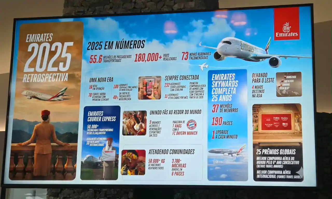 Durante o evento, Kátia Leite, da Emirates, destacou as operações da companhia aérea no Brasil, com voos partindo de São Paulo (GRU) e Rio de Janeiro (GIG), conectando os passageiros ao hub de Dubai e a diversos destinos internacionais, incluindo Argentina. A executiva também ressaltou a possibilidade de stopover em Dubai, além do conforto das aeronaves, com produtos que vão da Primeira Classe, muito luxo e com suítes privativas, à Classe Executiva, com assentos totalmente reclináveis, Premium Economy, que oferece assentos de couro mais largos com apoio para as pernas, refeições gourmet e entretenimento em HD sendo um excelente custo-benefício para voos longos e também apresentou a Classe Econômica, reconhecida pelo alto padrão de serviço e entretenimento a bordo.
