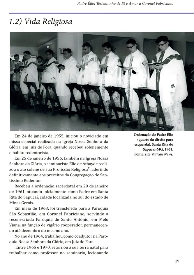 Obra: Padre Élio: Testemunho de Fé e Amor a Coronel Fabriciano Organizadora: Neucilene de Fátima Domingues